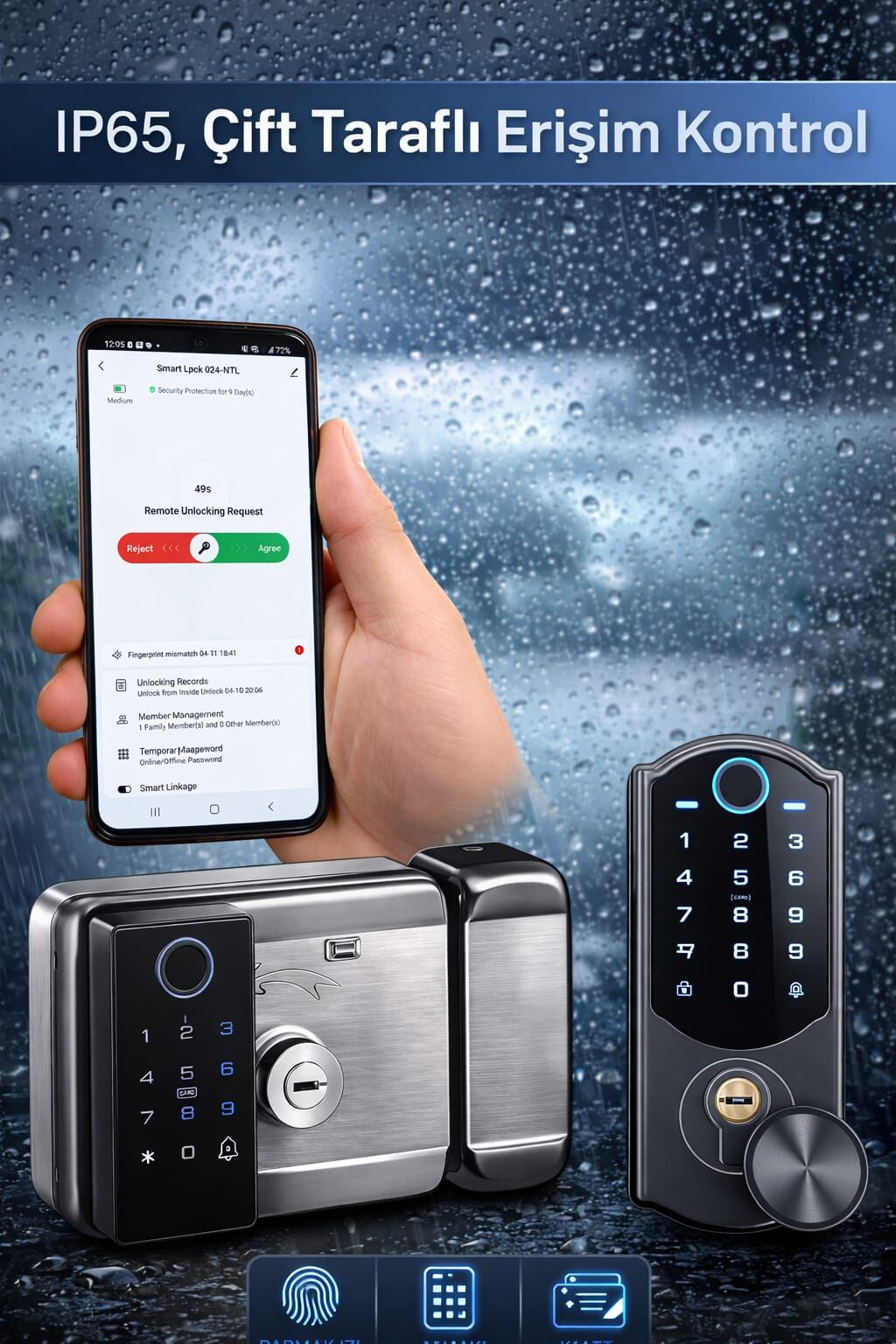 - Parmak izi, şifre, kart ve mobil kontrol