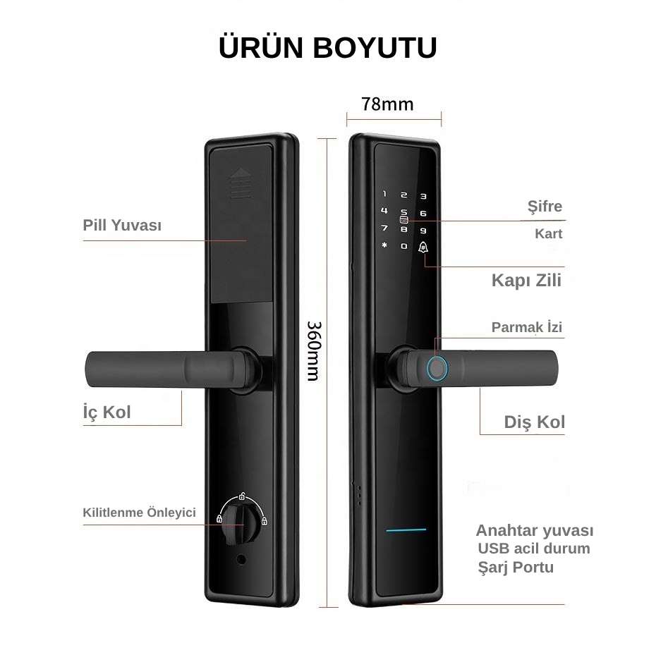 Günümüzde güvenlik sadece kilitlemek değil, aynı zamanda kontrol edebilmektir. AYSSMART RZ-2 Akıllı Kapı Kilidi, klasik anahtar kullanımını ortadan kaldırarak yaşam alanlarınıza hem güvenlik hem de konfor kazandırır. Gelişmiş teknolojisi sayesinde kapınızı birden fazla yöntemle açabilir, yetkilendirme yapabilir ve tüm girişleri kontrol altına alabilirsiniz.